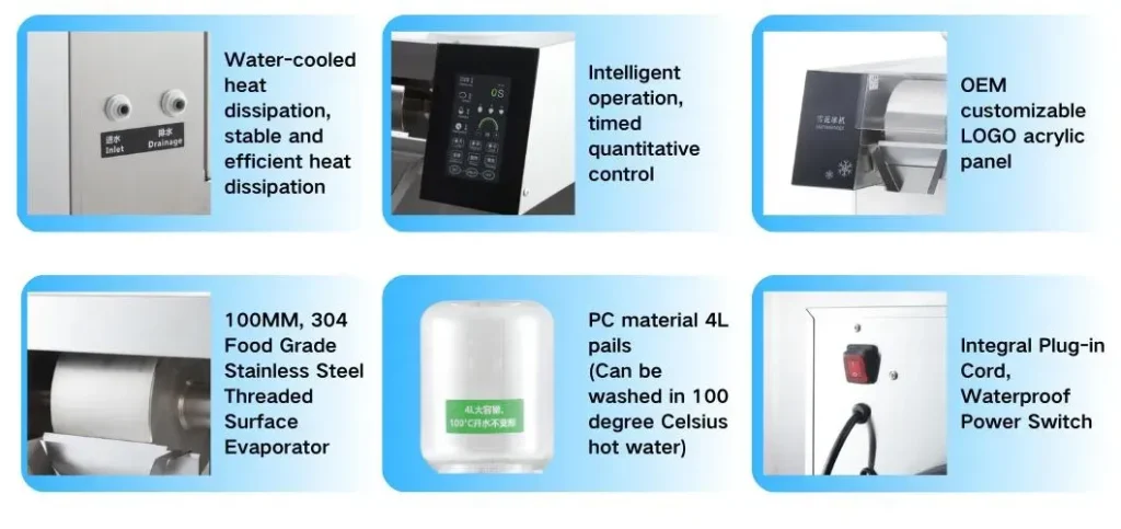 3.Multi-flavors: Suitable for all kinds of liquid raw materials, including fruit juice, milk tea, dessert ingredients, cocktails, etc., can produce a rich variety of flavors of snow ice to meet the needs of different consumer tastes.