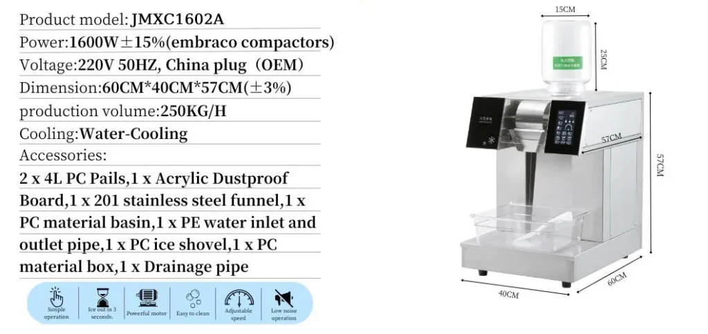 - Ice-Making Shapes: Snowflake/Spaghetti/Fine Needle/Flake Ice