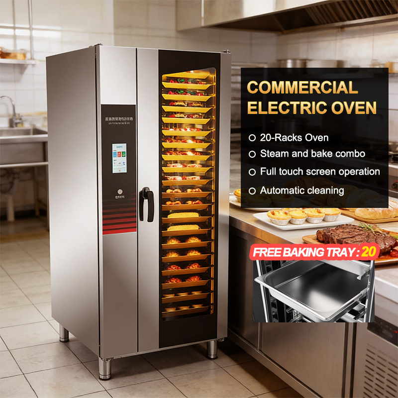 Commercial ovens deliver stable, enclosed heat circulation for baking, roasting and reheating meats, pastries and prepared meals. Precise temperature control and uniform hot airflow ensure consistent cooking results every time. Widely used in restaurants, bakeries, hotels and commercial kitchens. JuanMing ovens feature heavy‑duty construction for long continuous operation, simple operation design and easy daily cleaning & maintenance.