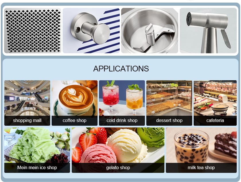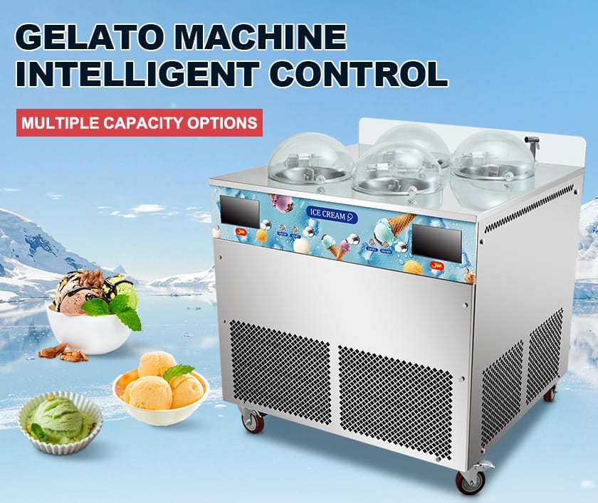 JuanMing Gelato Machine (as Hard Ice cream Machine), The capacity of a single material tank is 6L. Pour the raw materials into it. The first molding time of hard ice cream is 25 minutes, and the second molding time is 18 minutes.