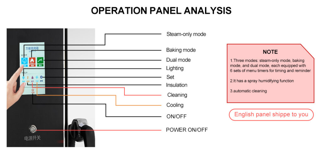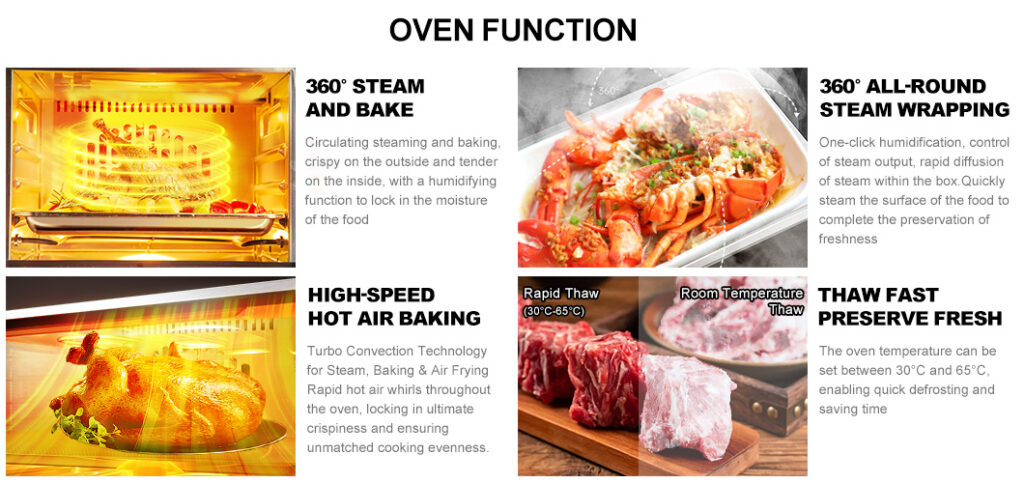 1. Three modes: steam-only mode, baking mode, and dual mode, each with 6 sets of menu timers for timing and reminders.