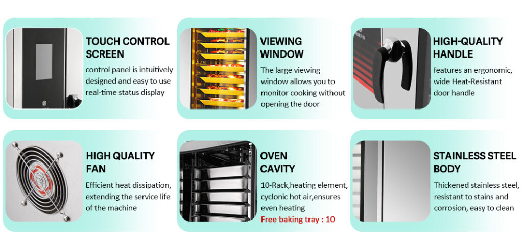 • Available in 4 to 20 trays. steam,roast,ombination cooking modes to meet high-efficiency service and standardized quality needs.