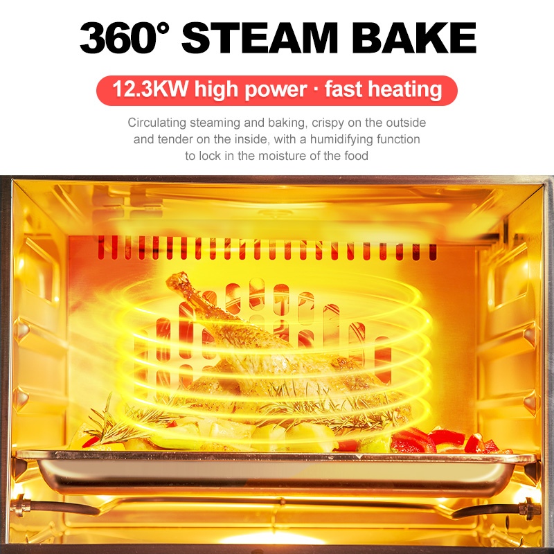 1. Three modes: steam-only mode, baking mode, and dual mode, each with 6 sets of menu timers for timing and reminders.